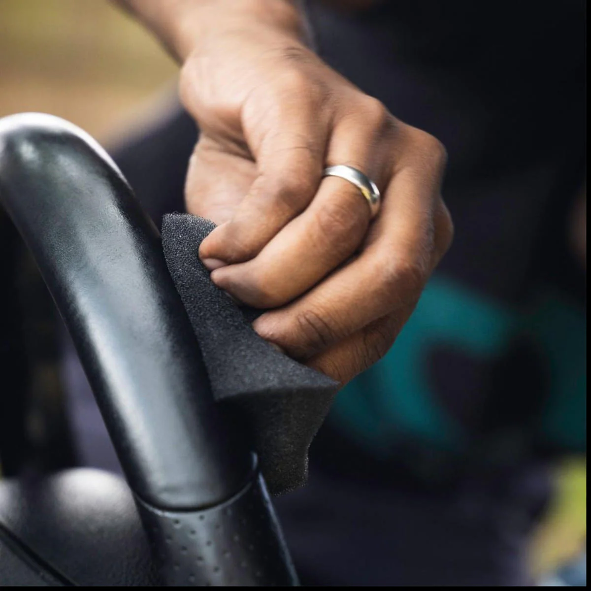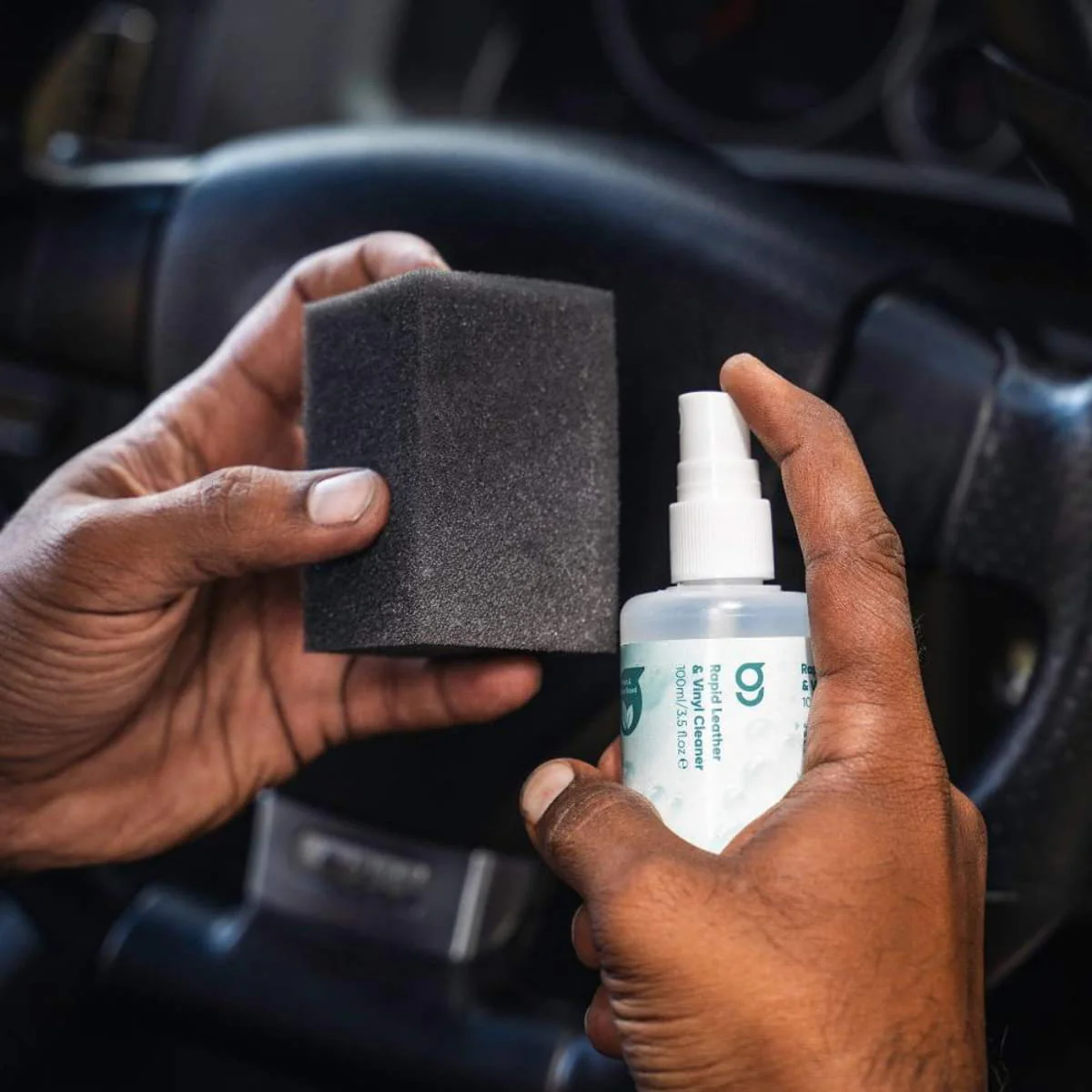 Növényi alapú bőrtisztítószer a a kormányra leragadt szennyeződések eltávolításához
