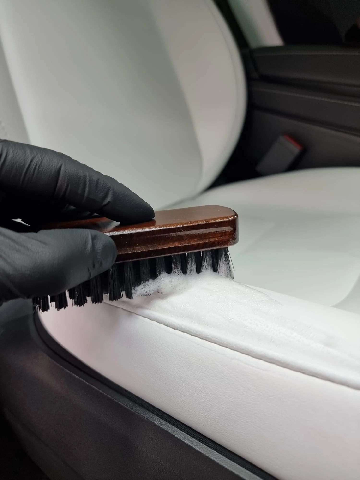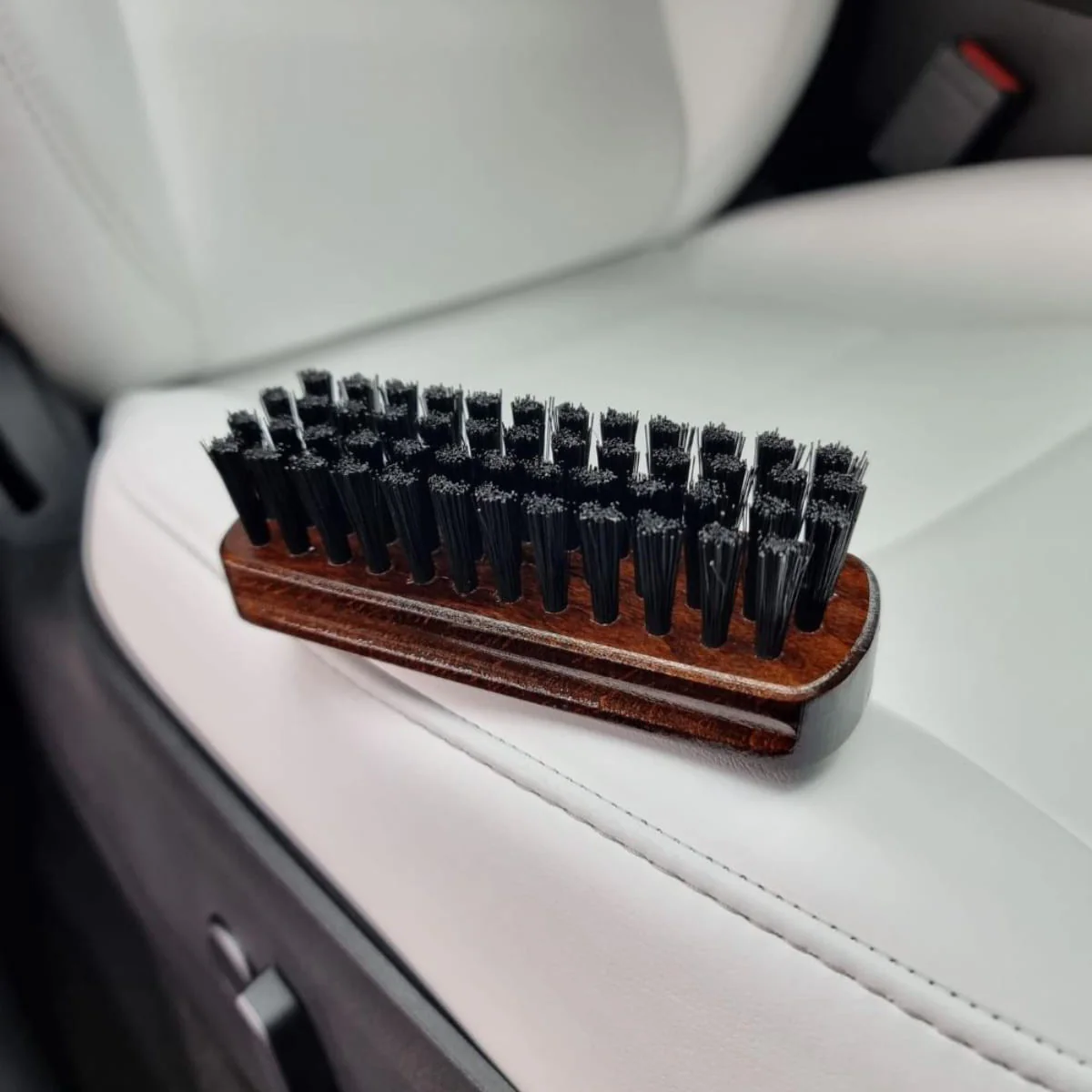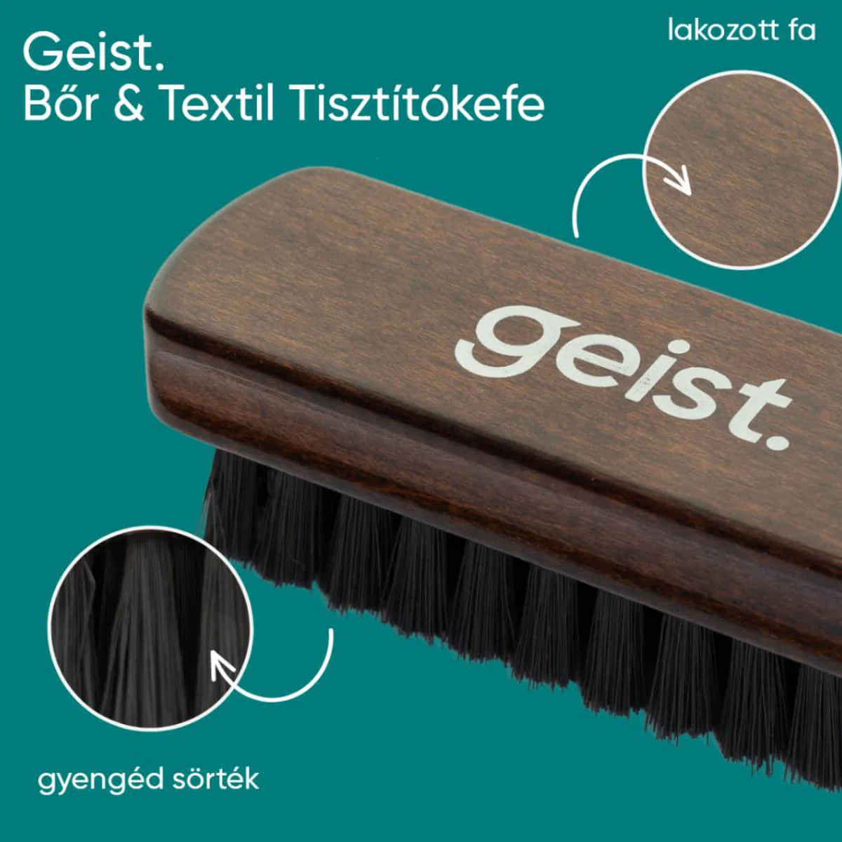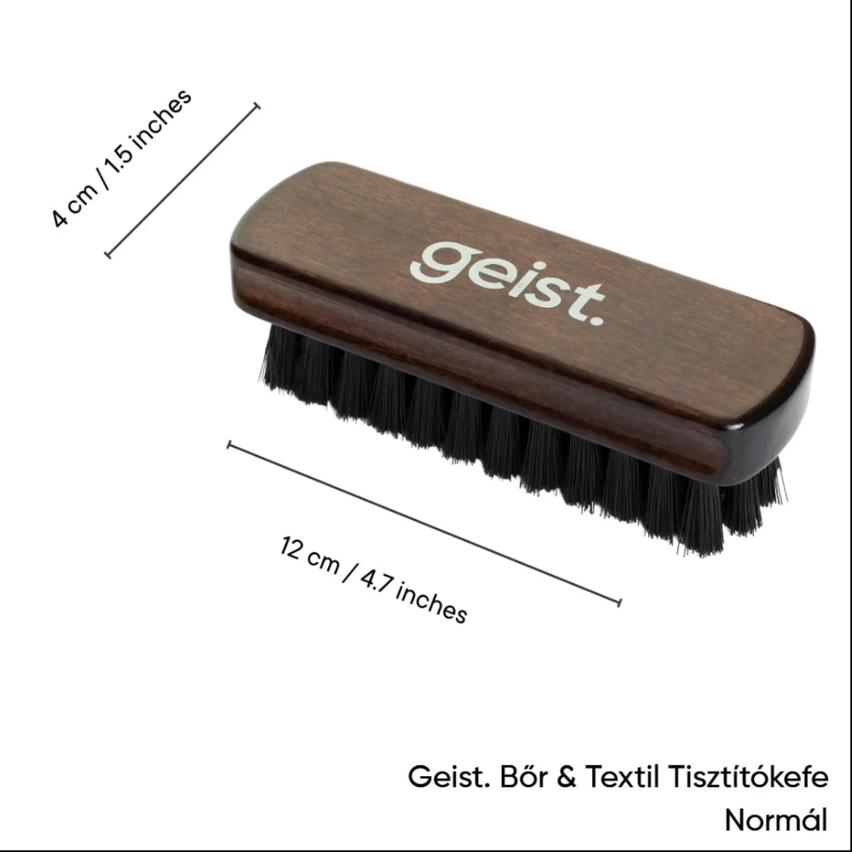 Geist. Textil & Bőrtisztító kefe szintetikus sörtékből készül, amelyek elég merevek ahhoz, hogy eltávolítsák a szennyeződést a bőr textúrájából, de nem annyira, hogy megsértsék a felületet. A 20 mm hosszú szintetikus sörték nagyon tartósak és gyorssá és könnyűvé teszik a tisztítást.